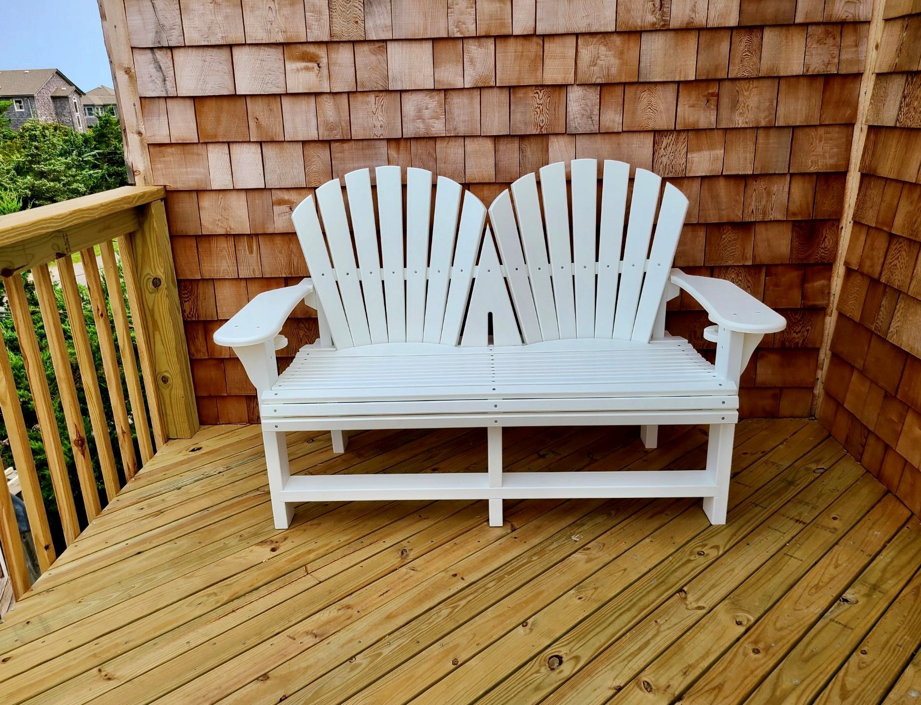 The Garden Bench is wonderful for those that want to enjoy relaxing with a friend or loved one but prefer a more upright seating position. These benches also feature a curved back that matches the classic Adirondack aesthetic we all love. Due to the seat positioning and height, this chair is very easy to get in and out of yet does not sacrifice comfortability.